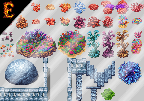 | Tags | Asset Pack, coral, Fantasy, Pixel Art, RPG Maker, Tilemap, Tileset, Top-Down, underwater |